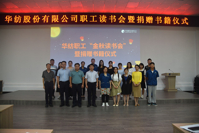 8月27日,公司在会议中心2号会议室举行了“华纺股份‘金秋读书会’暨捐赠书籍启动仪式”。活动由胡兴爽主持,团委书记陈冰宣读捐赠书籍倡议书,人力行政总监孙玉涛代表公司向新建成的职工图书室(全国职工书屋)捐赠书籍;王旭洲等三位管理者做了读书心得分享,孙慧霞等员工代表进行了诗文诵读;孙玉涛做了总结讲话并宣布捐赠书籍活动正式启动。