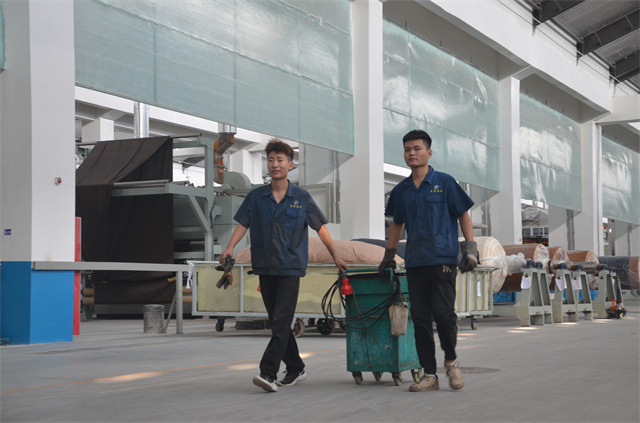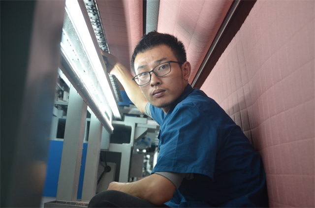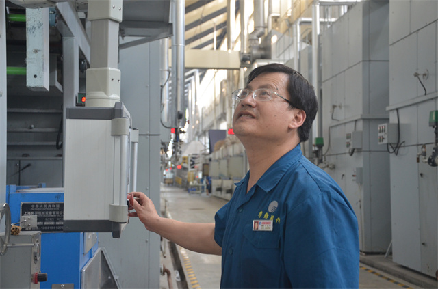 面料车间4号打底机的纪建峰,进入公司已10年有余,从事过多个机台的操作工种。