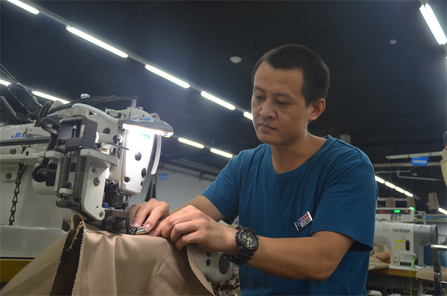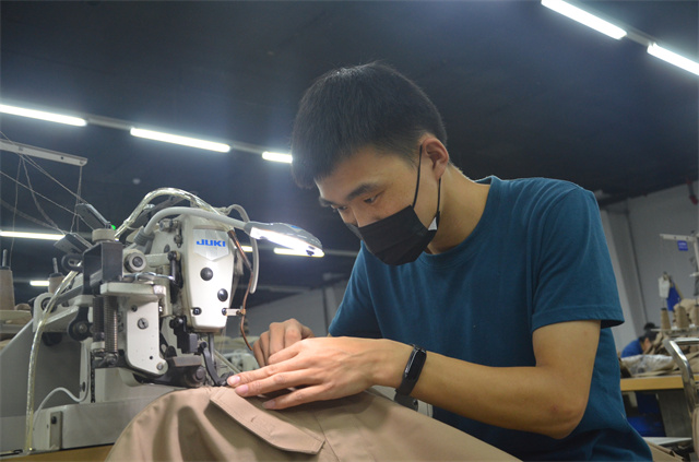 服装车间缝制二班多能工郭丛丛进入公司10年来,靠着不断追求精进,成长为对服装生产各环节驾轻就熟的“老把式”。