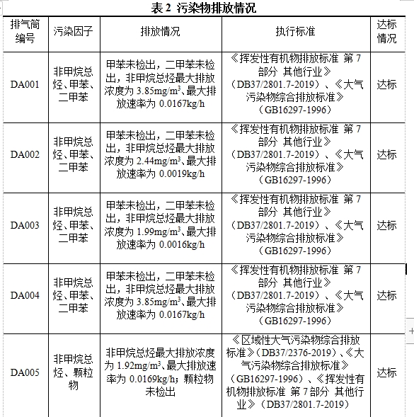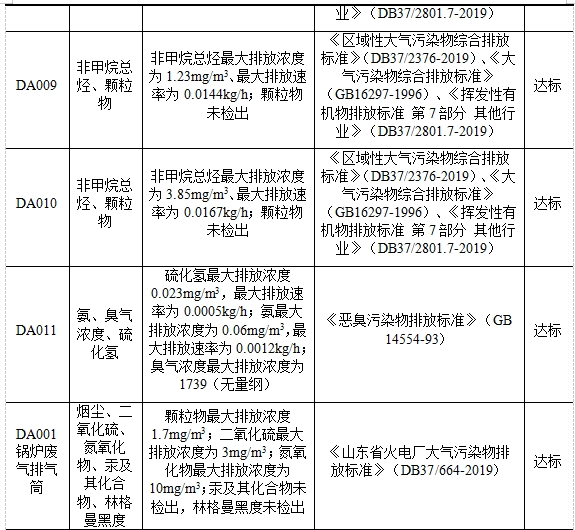 注:①排气筒编号来自排污许可证对排气筒的编号;