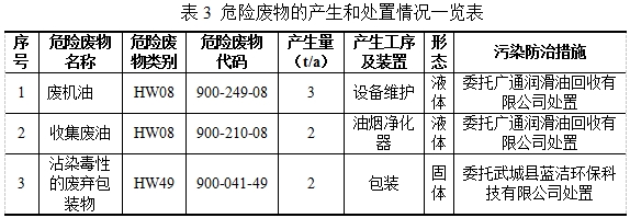 根据《国家危险废物名录》(2021年版),华纺股份有限公司现有项目所产生的危险废物有3种,其产生和处置情况见表3。