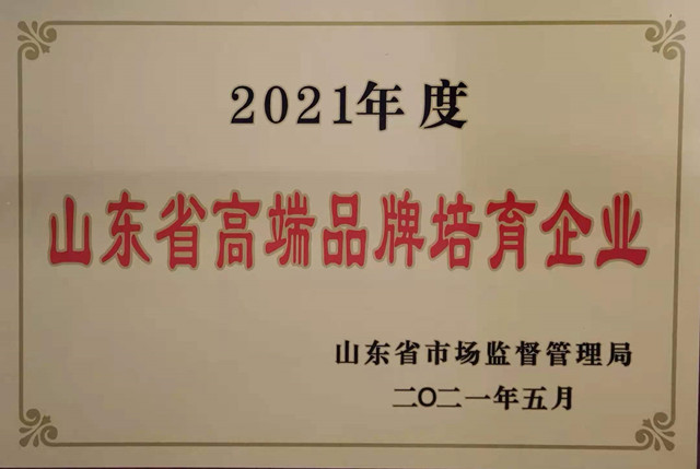 前不久,山东省市场监督管理局向社会公布了“2021年度山东省高端品牌培育企业名单”,公司以在品牌培育、品牌建设、品牌运营及品牌成长等方面的成效,跻身这一行列。