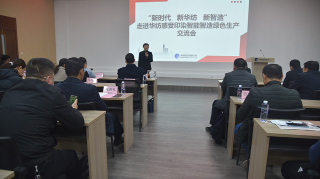 公司党委副书记盛守祥代表公司,向与会领导及会员单位代表介绍了公司“退城进园”暨“智能绿色工厂建设项目”、升级印染全流程的智能制造等情况,并围绕公司近年来大力推进企业转型升级和新旧动能转换工作,重点介绍了公司在智能智造、绿色生产方面的主要做法与经验。公司副总工程师王国栋对公司近年来推动转型升级及打造“智慧华纺”的整体发展成效,作了专题报告。