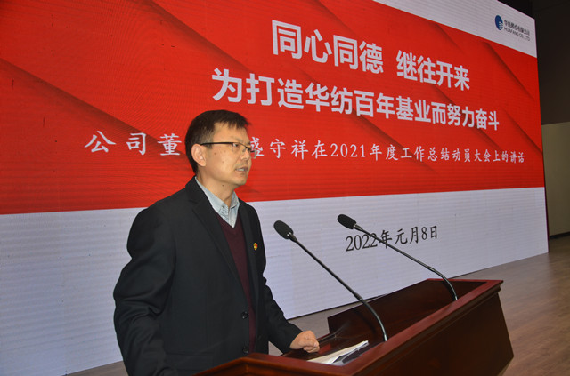 盛守祥在题为《同心同德,继往开来——为打造百年华纺基业而努力奋斗》的年度工作报中总结到,2021年是公司重要的转折点,在公司十年规划的开局之年,公司完成了整体搬迁,建成了智能制造5G工业园示范区,智能化、信息化水平显著提高,现代企业特征进一步凸显。在外部环境异常艰难的情况下,公司全体员工合力奋进,公司保持了安全、稳健发展。面对未来发展,他在报告中谈到,公司将继续坚持“一体两翼”的发展布局,以党建为引领,以卓越绩效和精益生产为管理主线,推进多元创新,“华纺是世界的,世界是华纺的”,在45年发展积淀基础上,推动华纺事业沿着高质量方向阔步迈进。