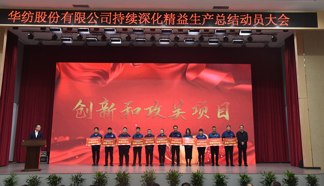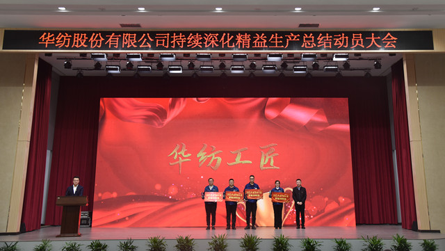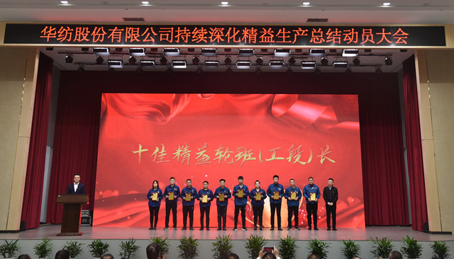 会上,公司董事长盛守祥为2021年度优秀团队、劳动模范颁奖;总经理闫英山为华纺工匠、十佳精益轮班(工段)长、十佳技术能手、十佳操作能手、优秀员工代表颁奖;质量总监李风明为优秀CQI项目、创新攻关项目、优秀精益机组代表颁奖。公司对在过去一年的“我与效益提升”工作中表现良好的原料运营公司等10个部门给予了通报表扬;“退城进园”暨“智能绿色工厂建设项目”整体建设与搬迁,成为“2021-华纺年度感动”内容。