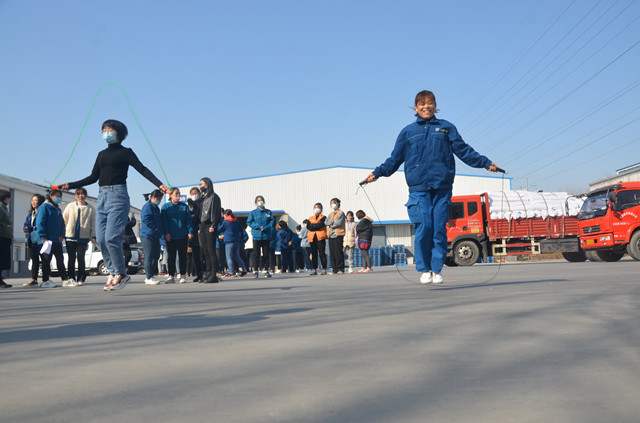 本次趣味运动会设有4个比赛项目,分别为5人拔河、两人三腿跑、单人跳绳、踢毽子,公司众多女职工踊跃报名参加比赛。广大女工欢聚一堂,提前来到各项目区域进行赛前准备和热身,活动还没开始,现场气氛就已经“燃”起来了。比赛开始后,现场口号声、加油声交织在一起,将活动的氛围推向了高潮。
