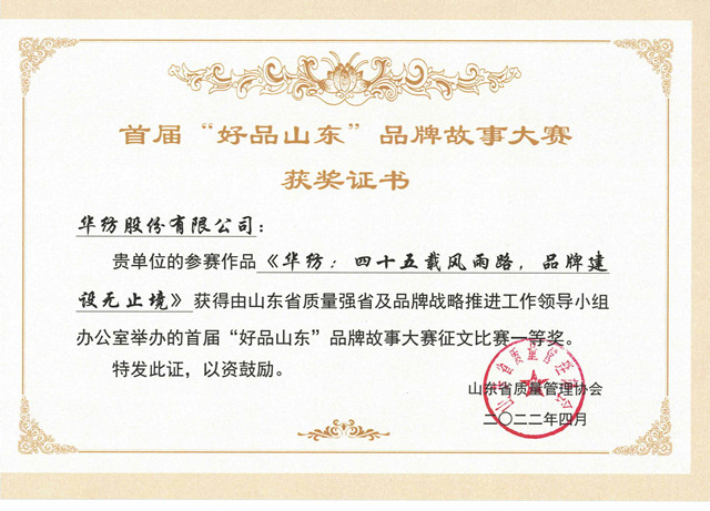 华纺荣获首届“好品山东”品牌故事大赛一等奖