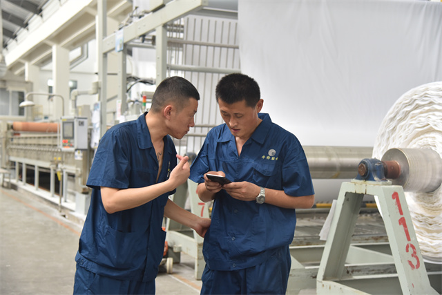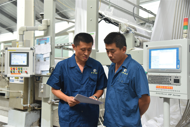 孙镇身着工装,每天巡回在车间前处理机台之间,和畅的机声成了他工作之时的伴奏。落实各机台的计划,组织各机台生产跟进,管控本班的产品质量,对操作规范进行及时检查、现场纠偏与指导培训。他一心扑在工作上,每天忙得不亦乐乎,目标是带领全班19名成员保质保量地完成车间下达的任务目标。他说,“做好生产工作有两件法宝:一个是责任感,一个就是精益生产意识。”在孙镇的心目中,作为公司的管理主线,精益生产需要全体“华纺人”共同倾心“打磨”,在时间里“磨”出真功夫来,干工作没有捷径,反复推敲,仔细琢磨;经过工作实践的摸爬滚打,才能提升自身本领,才会使生产工作一步步精进。