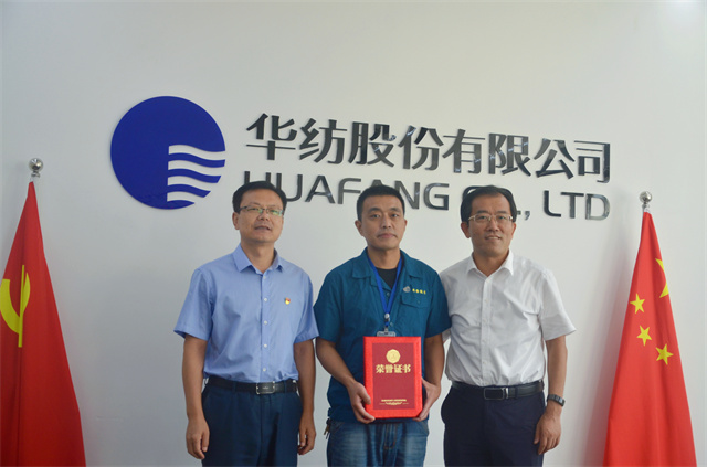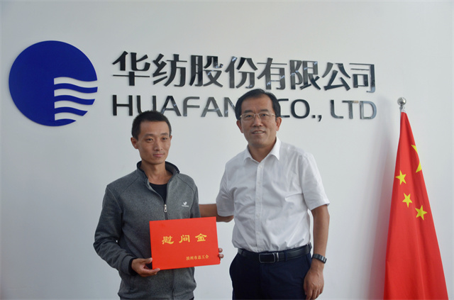 当天活动中,栾兴刚向市直在档困难职工、公司华瑞联晨职工牛鲁滨发放了慰问金,向面料车间后处理甲班团队代表徐龙龙颁发了滨州市“2022年工人先锋号”奖牌,向印花车间印花机机长张颂超颁发了滨州市“2022年最美工匠”荣誉证书。