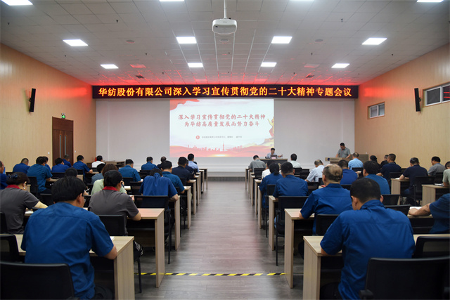盛守祥指出,党的二十大是在全党全国各族人民迈上全面建设社会主义现代化国家新征程、向第二个百年奋斗目标进军的关键时刻召开的一次十分重要的大会,是一次高举旗帜、凝聚力量、团结奋进的大会。大会回顾总结了过去五年的工作和新时代十年的伟大变革,阐述了开辟马克思主义中国化时代化新境界、中国式现代化的中国特色和本质要求等重大问题,对全面建设社会主义现代化国家、全面推进中华民族伟大复兴进行了战略部署。也为我们华纺事业高质量发展指明了前进方向。华纺作为中国纺织印染行业重要骨干力量,将坚决贯彻党的二十大精神,牢牢把握新时代新征程党的使命任务,自觉把责任担当放在心上、扛在肩上,以高质量发展为目标,踔厉奋发推进高水平现代化企业建设。