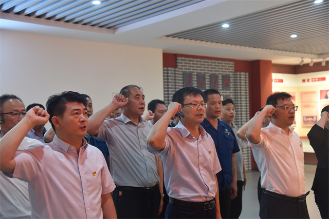 参观最后,全体党员在公司党委书记、董事长盛守祥的带领下,举起右拳面对党旗,重温了入党誓词。