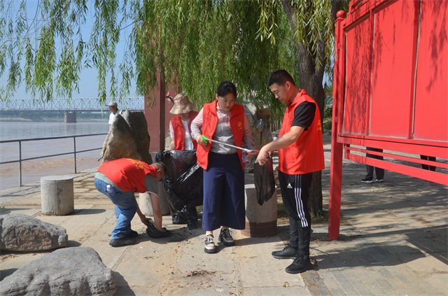 上午8时50分志愿者们准时集合出发,大家身穿红色马甲,头顶烈日、自由组队,发挥团队协作精神,沿着黄河两岸徒步行走捡拾垃圾,有的手持钳夹,有的拿着垃圾袋,认真清理收拾垃圾,将废弃的烟盒、烧烤残余等垃圾清理干净放入袋中。志愿者们充满干劲,充分发扬不怕脏,不怕苦,不怕累的精神,积极投身到环境清洁行动中,成为黄河边一道靓丽的风景线。