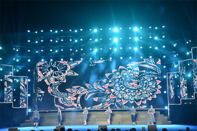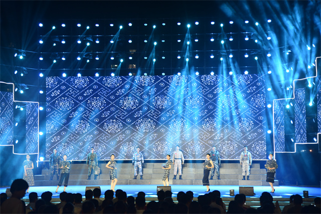此次文艺汇演中,公司参演人员尽着由公司设计生产的服装产品。蓝印花布系列服饰以蓝白分明、清新明质、纯真素朴、典雅大方的艺术特点体现了滨州大地浓厚的文化底蕴。