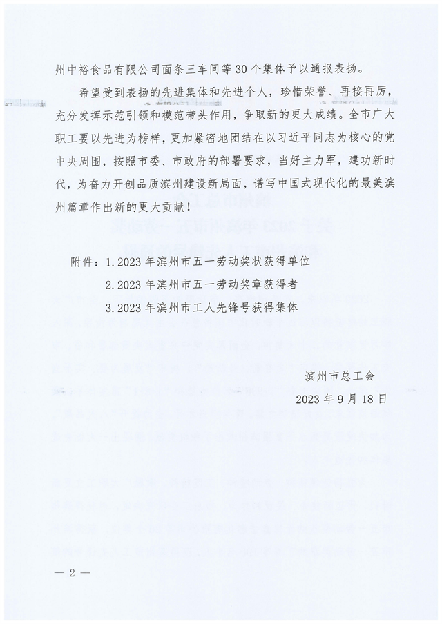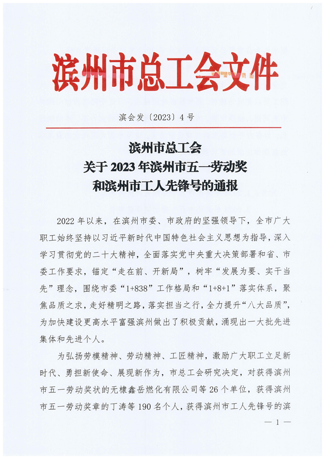 导读:近日,滨州市总工会发布了“关于2023年滨州市五一劳动奖和滨州市工人先锋号的通报”,