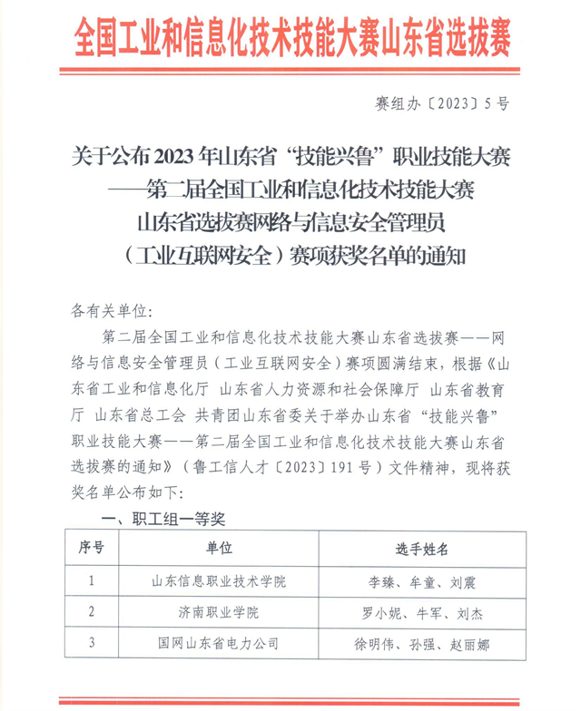 导读:近日,2023年山东省“技能兴鲁”职业技能大赛——第二届全国工业和信息化技术技能大赛山东省选拔赛网络与信息安全管理员(工业互联网安全)赛项圆满结束,