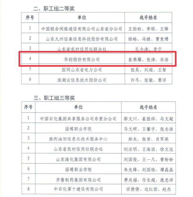 近日,2023年山东省“技能兴鲁”职业技能大赛——第二届全国工业和信息化技术技能大赛山东省选拔赛网络与信息安全管理员(工业互联网安全)赛项圆满结束,公司互联信息部信息中心信息安全管理员崔乘耀、张涛、孙浩三名员工,赛前积极备战,努力研究网络安全前沿技术,赛中通力合作,最终荣获赛项职工组二等奖。