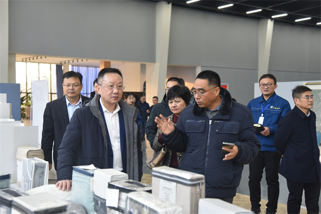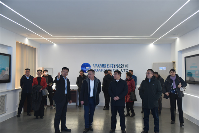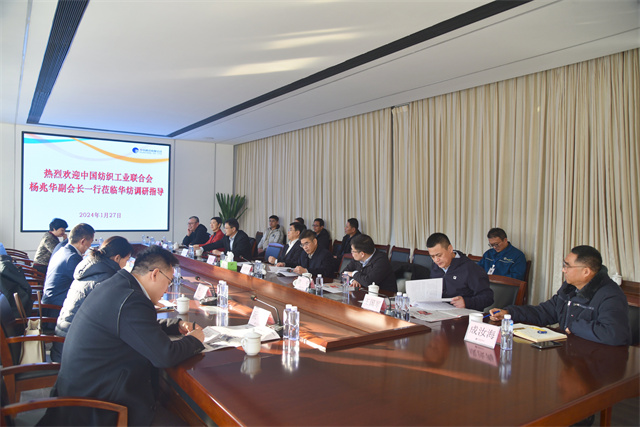 1月27日,中国纺织工业联合会副会长杨兆华一行到华纺股份调研指导工作。市工信局党组书记、局长姚振祥,滨城区副区长袁见,公司党委书记、董事长盛守祥陪同调研。