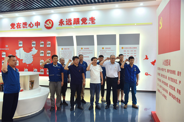 会议最后,参加座谈会的退役军人代表面向党旗,重温了入党誓词。